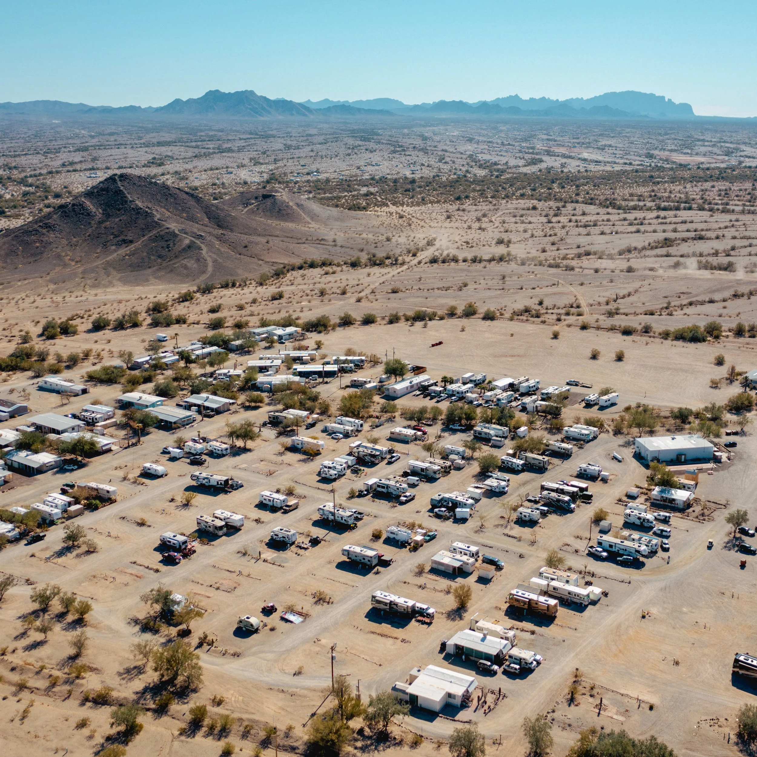 Desert Gardens RV Park is the perfect getaway for those seeking the peace and quiet of the desert with the advantages of full hook ups, amenities, and off-roading trails. Get a bird’s eye view of the park with this aerial video, and see some aerial photos in the photo gallery!